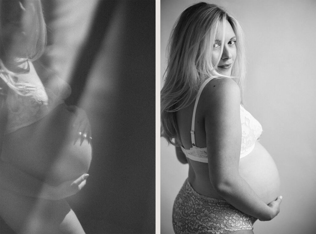 For this particular maternity boudoir session, we chose to spend most of our time inside the studio. August in the mountains can still carry a lingering heat, and the controlled natural light indoors allowed us to create something intimate, relaxed, and artfully composed without rushing or discomfort.
